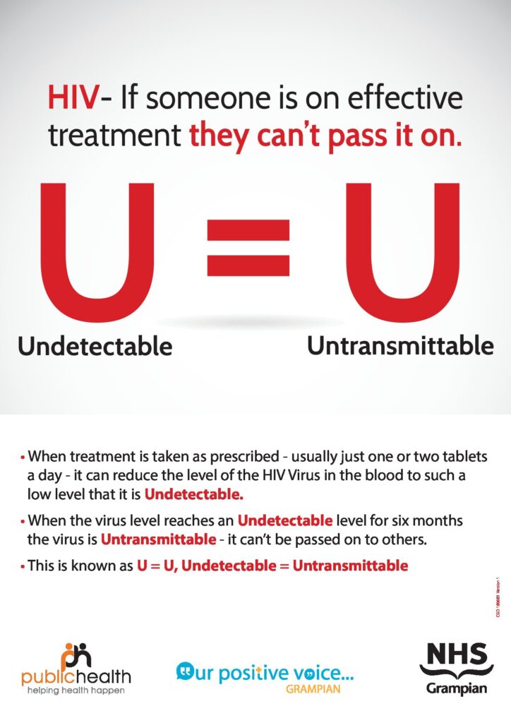 When the virus level reaches an Undetectable level for six months the virus is Untransmittable – it can’t be passed on to others.